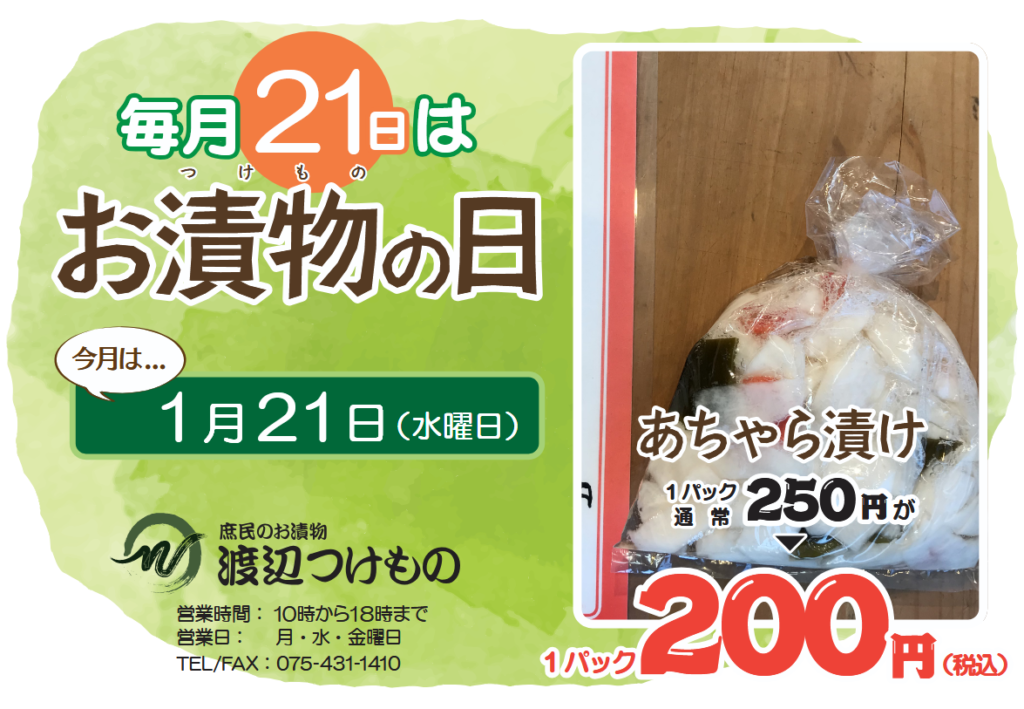 この機会にぜひ、渡辺つけものまでご来店ください。